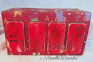 And of course the table that caused the trouble! Made from a clear glass round flat backed bauble from a dollar store with toothpicks forming a square base hot glued on the bottom and toothpick legs attached at the corners of the base. Tags tied on with twine and a key place between the cookie (clay) and the bottle (filled with green acrylic paint). Maybe my favorite piece on this.